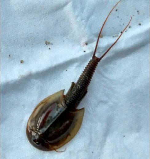 网友爆料:鲎虫,俗称翻车车、王八鱼、水鳖子、王八盖子、马蹄子、西纳根结虫(蒙古语),别名三眼恐龙虾。是一类小型的甲壳动物,属鳃足纲,背甲目,现在已知的大约15种鲎虫都是淡水鲎虫,栖息在湖泊、池塘中,主要分布在欧洲和北美,中国已经发现的有中华鲎虫和丰盛鲎虫两种。鲎虫的大背壳呈椭圆形,腹部细长,柔软灵活。长尾巴成叉状。体长大约有100毫米,共分成约40节,还有些叶子一样的附属肢体。有些肢体多达70多对。![]()