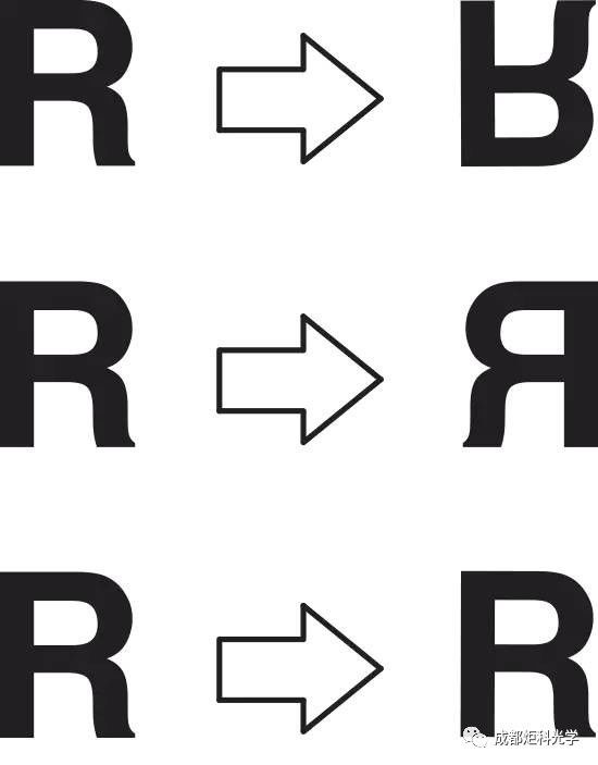 除了同位,还有三种不同类型的图像变化(图6)。倒位是指水平轴上的图像翻转,而逆转是指垂直轴上的图像翻转。当两者同时进行时,就会发生180°的图像旋转,因此没有同位变化。思考同位的另一种方法,是将它定义为通过针对朝着任何物体或图像光学空间的传播方向回顾来决定(图7)。