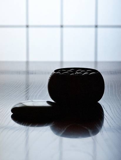 黑与白虽不是最美的颜色,却一直为围棋的执着。在溶入那片黑白的世界里,反孕育出许多色彩缤纷的漪丽来。围棋子落在棋盘上,是不能移动的,表面上看起来是静止的。但由于子与子的衔接, 使他血脉相连一旦活络起来,却是万马奔腾,一泻千里。一颗子一颗子落在棋盘上,感觉相当孤单。