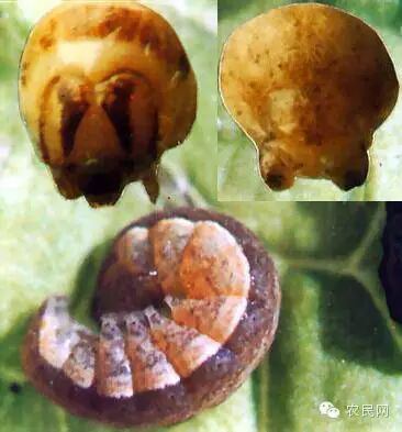 mm,体表光滑,无微小颗粒。头黄褐色,有明显的八字形斑纹。胸、腹部气门线以上区域淡黑色;气门线以下浅褐色或浅灰色。臀板黄褐色,前缘及两侧深褐色,小黑点集中于臀板基部,排成2个弧形。