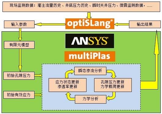 3)流固耦合分析:基于ANSYS开发的各向异性渗流分析与双向流固耦合技术,考虑渗流与裂隙扩展的交互影响,真实模拟水力压裂过程。