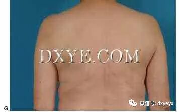 背部外形无轮廓畸形,愈合良好,无变形或聚束。