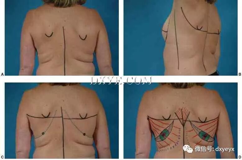 历史上,LDF的使用涉及仅将肌肉转位至切除术缺陷,其中位于肌肉顶部的具有不同大小的皮肤和脂肪的孤岛。 虽然这可以有效地为提供皮肤覆盖,但是提供体积的更有效的技术是在皮肤岛以外的肌肉中采集深层的皮下脂肪。 深胸筋膜提供了一个容易识别的解剖标志,指导解剖,甚至允许筋膜下的深层脂肪层被收集超出肌肉边界。 通过增加皮瓣的总体积和创建一个体积增加的背阔肌皮瓣,填补和软化切除术缺陷的边缘的能力得到加强。