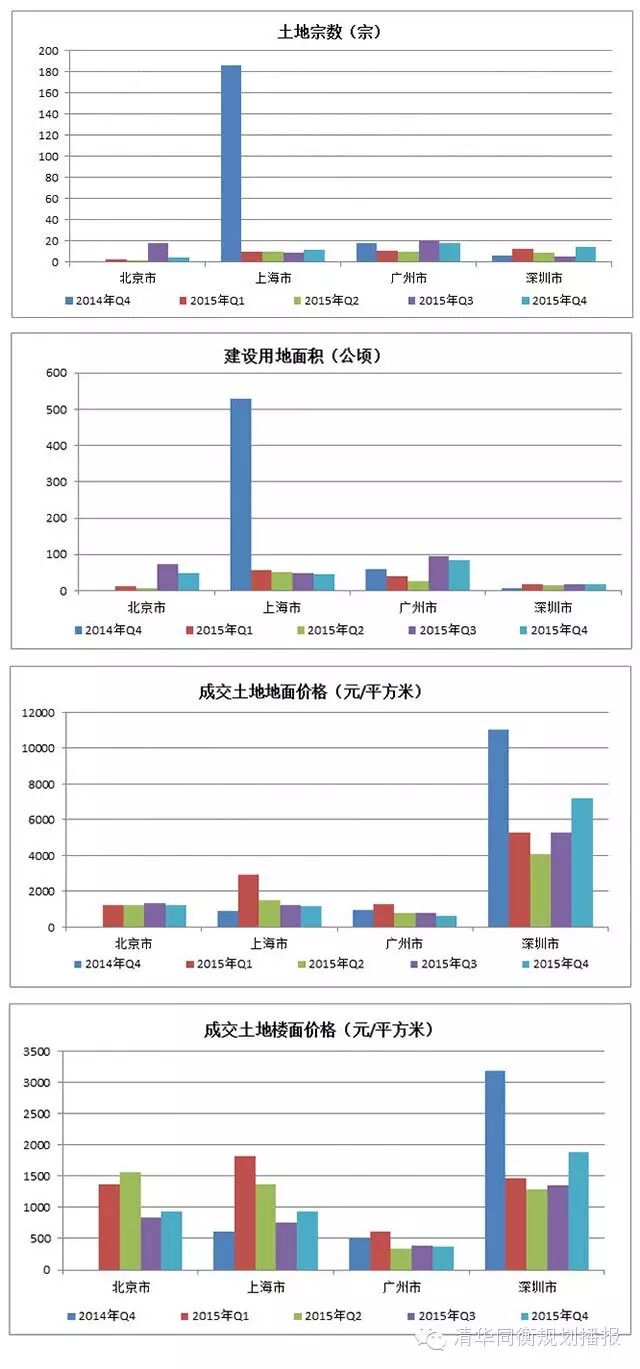 组图4一线城市2014年3季度以来各个季度分城市工业用地交易数据(数据来源:中国产业新区研究院)