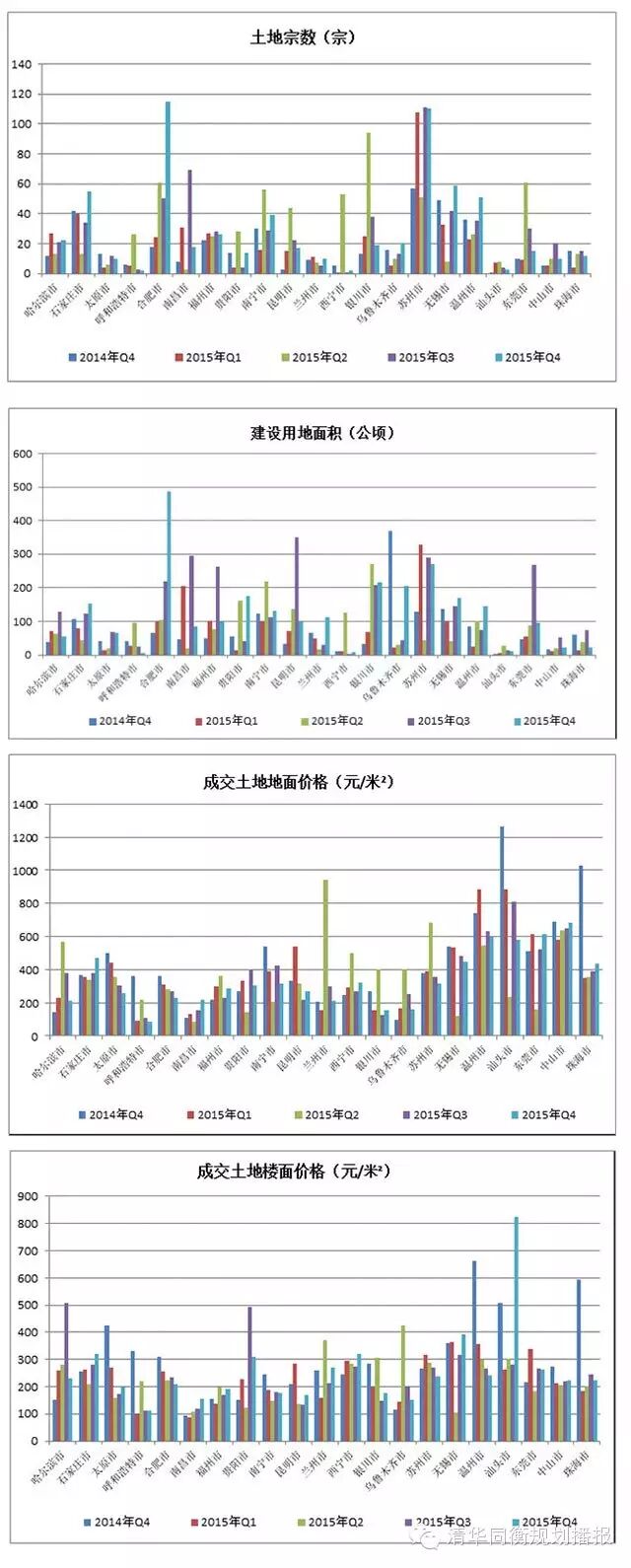 组图6三、四线城市2014年3季度以来各个季度分城市工业用地交易数据(数据来源:中国产业新区研究院)