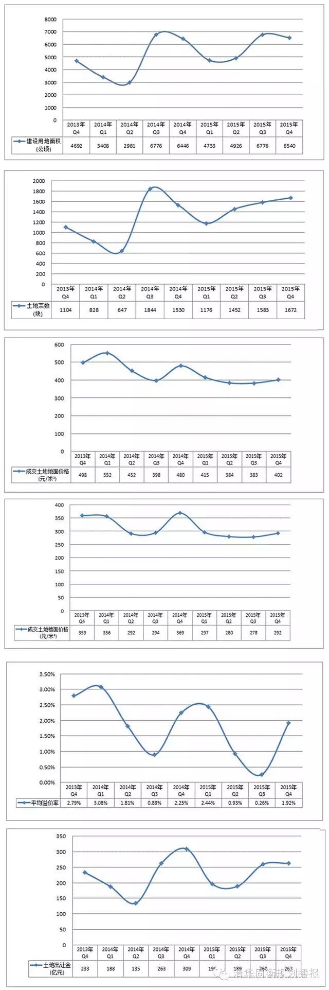 2015年经济运行总体呈持续下行趋势,工业地价明显下降。工业用地成交量较2014年有所上升,但成交土地地价和楼面价均下跌。