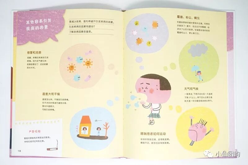从出门穿戴,到不同的季节过敏症会有什么变化;从居家卫生,到学校值日时的注意事项;从饮食,到和植物动物接触时的注意事项……几乎面面俱到。