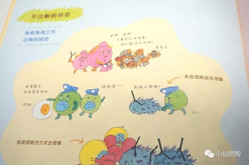 清新温暖的水彩,配上幽默通俗的文字对话,孩子们轻而易举的就可以理解这些看似枯燥无味的病理知识。