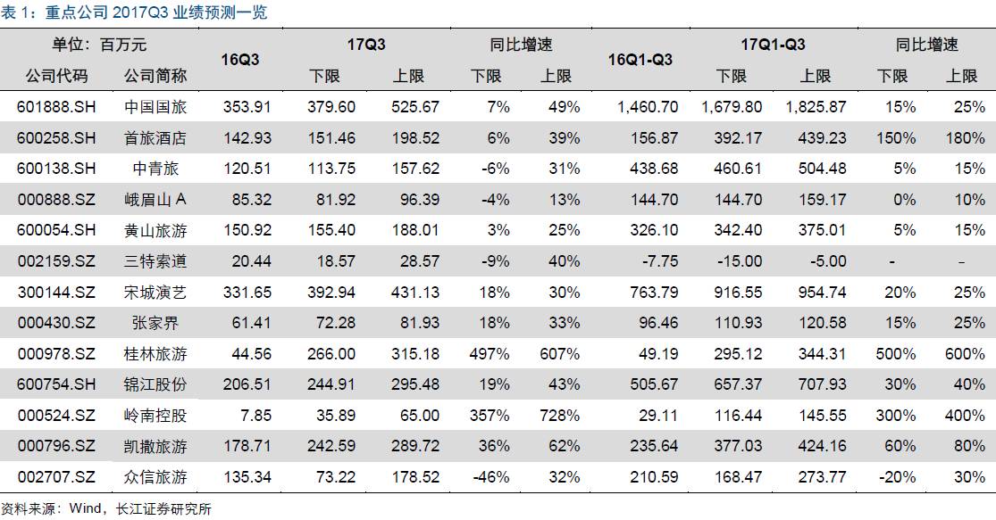 餐饮旅游各子行业2017年基本面相较去年同期都有所改观:免税行业受益三亚市场回暖及消费回流政策导向长期蓬勃发展;景区行业在天气晴好条件下客流实现在去年低基数下的反弹;酒店行业受益于消费升级,中高端酒店持续高速增长,同时经济型酒店企稳;出境游行业受益于欧洲线客流回暖及人民币升值利好基本面改善。预计三季度主要公司业绩有望实现增长。