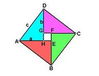 中国三国时期赵爽为证明勾股定理作“勾股圆方图”即“弦图”,按其证明思路,其法可涵盖所有直角三角形,为东方特色勾股定理无字证明法。2002年第24届国际数学家大会(ICM)在北京召开。中国邮政发行一枚邮资明信片,邮资图就是这次大会的会标中国古代证明勾股定理的赵爽弦图。