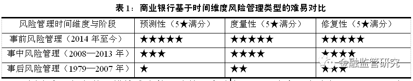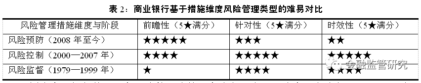 国内商业银行基于措施维度的风险管理实践主要可以分为三个阶段。一是1979年到1999年期间,国内商业银行囿于信息技术的研发与应用,基本尚未实现大一统的全国性系统管理,一般以分行甚至支行为单位进行核算与汇总。这一阶段的风险预防、控制和监督也大都各自为政,存在较大的行际和地域差异,留下了较深的人为特色烙印。二是2000年到2007年期间,特别是在2001年中国加入世贸组织之后,商业银行加速了与国际接轨的融合步伐。国有大型或股份制商业银行,先后实现了数据集中和公开上市。这一阶段,商业银行更加重视事中的风险控制,风险管理的资本要求、计量方法、防控要点逐步与国际接轨,采取了更为通行、专业的行业做法。三是2008年以后,随着次贷危机的持续发酵,直接催生了新巴塞尔协议的出台,,对拨备覆盖率、拨贷比、资本充足率分别提出了明确的指标,。这一阶段,商业银行不得不更加关注日常的风险管理和预防措施,逐步向事前风险预防倾斜。