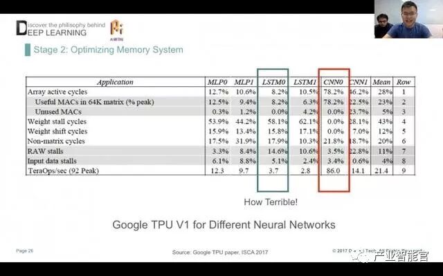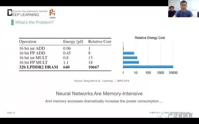 姚颂针对应用(inference推理)场景介绍了他的观察。比如在安防监控、数据中心、机器人设备上都使用GPU的话,功耗和延迟都会是严重的问题。所以许多公司都在研究新一代的深度学习平台。