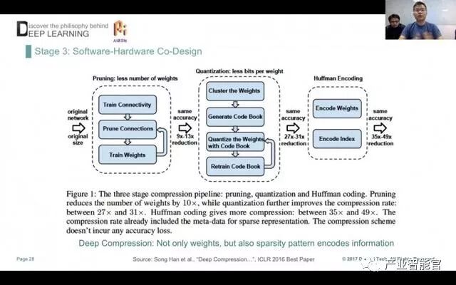 几位创始人在创立深鉴科技前做了许多研究工作,比如韩松的NIPS2015文章“Learning both Weights and Connections for Efficient Neural Networks”。而后,这篇文章的改进工作“Deep Compression”拿到了ICLR2016的最佳论文。