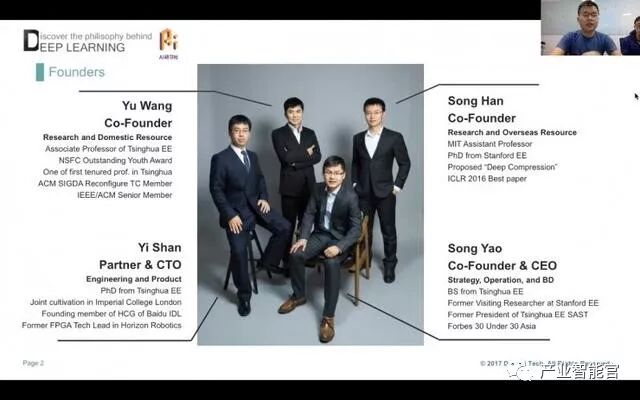 深鉴科技的创始人为汪玉副教授、韩松博士、单羿博士以及姚颂本人。