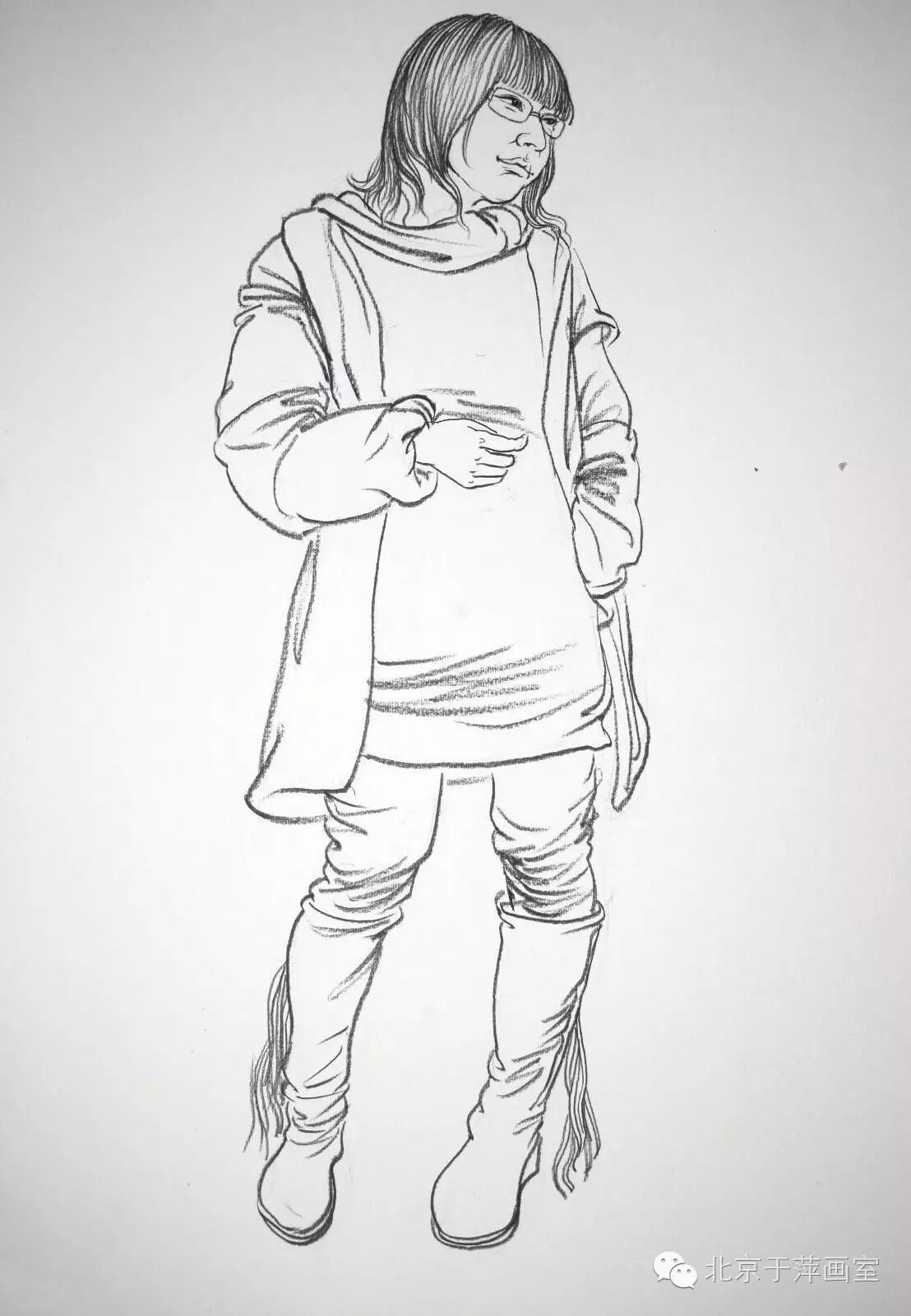 线性速写是一种以线条为主来表现物像形象和韵味的绘画形式,和其他形式不同,线性速写没有过多夸张的外在表现手法,仅仅是用最简单的线条长短、粗细、虚实变化来表现,而其所追求的恰恰是绘画的本质——形。形是速写考试中最基本的要求,追求形的准确性也便成为我们速写训练的首要目标;而“美”则是线性速写的魅力所在。精致的五官刻画,装饰感极强的衣服节奏变化和整体画面线条的韵律,能够让我们的画面在众多考卷当中“美”起来。