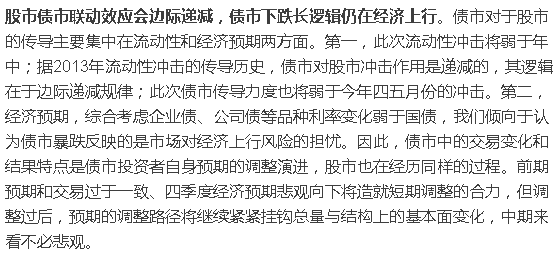 “不进则退”还是“进三退二”?市场上行动力犹存,节奏趋于“进三退二”。短期调整压力有三:其一,债市流动性传导;其二,短期三季报业绩改善落地;其三,周期供给侧预期修正,消费龙头业绩高增持续性分歧。我们认为,短期冲击之后,市场有望进入“进三退二”的“中期向好”螺旋。螺旋源于需求和供给的预期从一致走向分析,而数据的验证和逻辑的释放需要时间。逻辑有三:需求侧数据的超预期平稳;供给侧从“难超预期”到“部分超预期”;以及金融去杠杆的陆续推进。