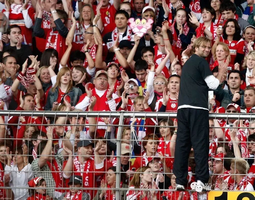 这个期间,克洛普带领美因茨经历了一次升级,一次降级,但更多时候挣扎在险些升级却最终擦身而过的边缘,三次微弱劣势,三次跌倒在终点前,再回首,已是足够很多人韶华白首的八年。心力交瘁的克洛普终于不舍离去,离开他深爱的美因茨,去奔赴更广阔的天空。离去的当天,美因茨两万球迷为他告别,感谢的掌声与不舍的泪水糅杂交错,不绝于耳。