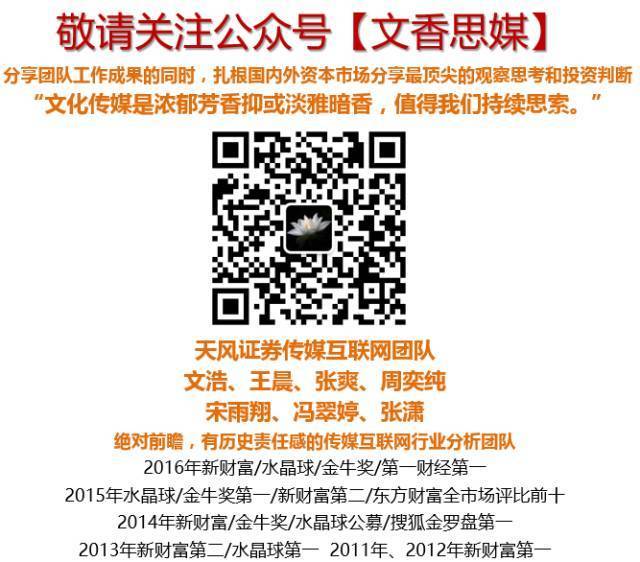 具体个股:1)营销持续推荐龙头白马【分众传媒】17年前三季度扣非净利润同比增长34%,内生增长亮眼,Q4受益渠道价值提升有望持续增长;2)游戏板块成长能力及经营能力指标相对突出,后续需重点关注核心作品上线进度及流水表现,关注A股龙头【游族网络、三七互娱、完美世界】及出海【宝通科技】、Q4业绩持续强劲【恺英网络】等;密切跟踪【中文传媒、IGG、昆仑万维、世纪华通】;3)电影【光线传媒】发行优势逐渐巩固龙头地位,深度绑定猫眼建立互联网渠道壁垒,继续基于三年长线大逻辑重点推荐; 4)阅读板块高景气,根据估值及情绪关注龙头港股【阅文集团】、A股【掌阅科技】(17年前三季度扣非净利润同比增长97%),以及【新经典、中文在线、平治信息(Q418亿解禁)、思美传媒(定增批文明年1月到期)】;5)电视剧板块业绩多集中在Q4,,密切关注【慈文传媒、华策影视】等。