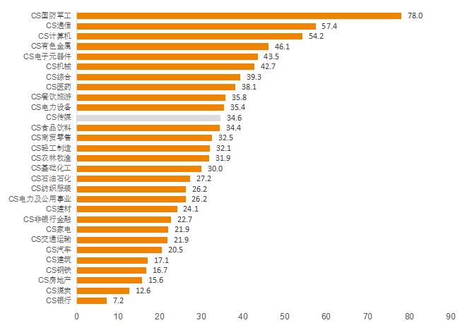 图24:A股板块PE估值水平对比(TTM,整体法)