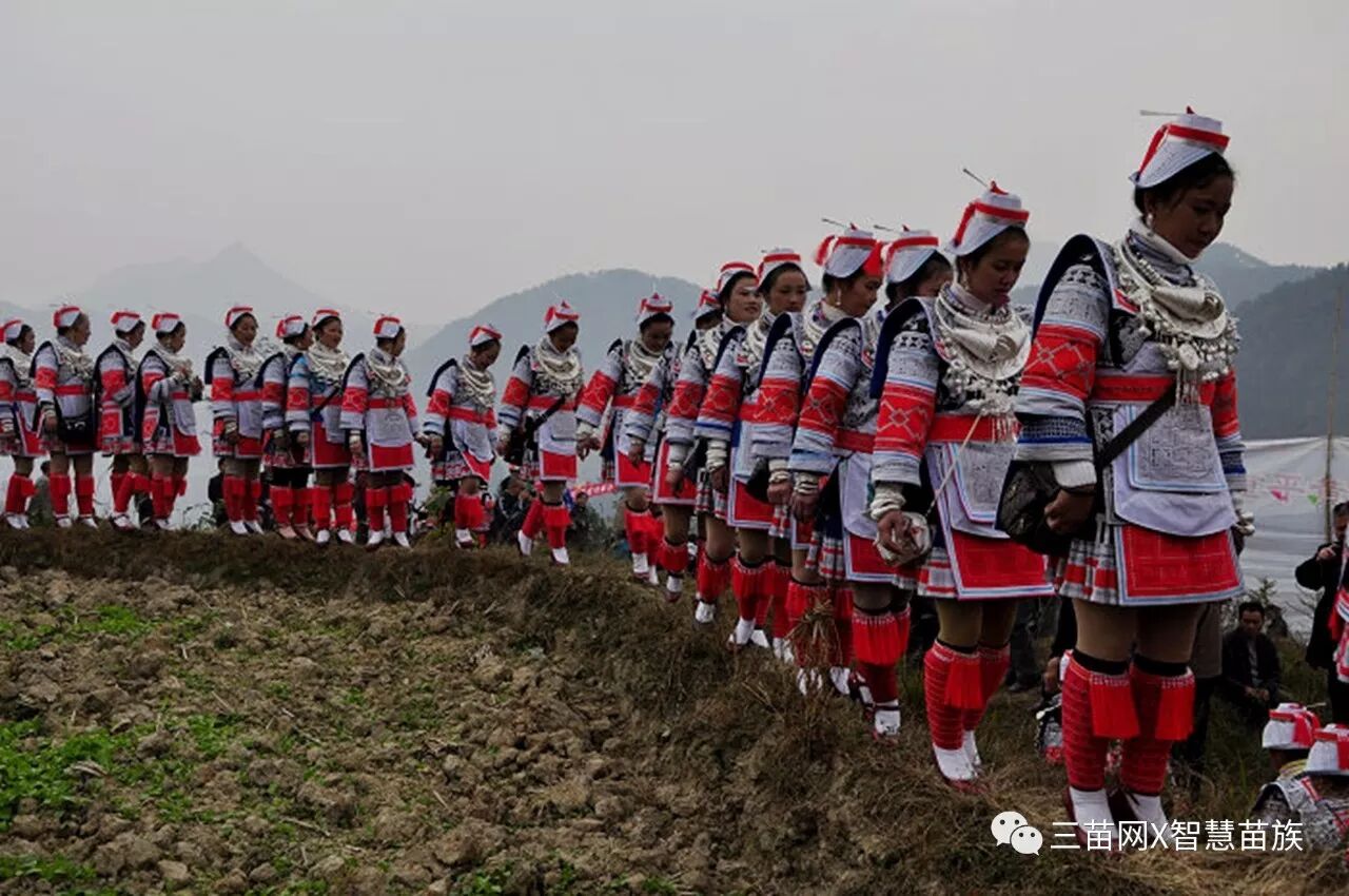 革家姑女人的衣冠十分讲究,女性依然是头顶灰白的巾帽配上鲜红色的条饰并在脑后垂着红缨(已婚女换成蓝头帕),显得相当醒目。帽檐在耳朵两边撑开,活像战时的头盔,腰缠围裙,脚打绷带均以红色作装饰,乍一看,活脱脱就是飒爽英姿古代武士“戎装”。也正因为这身“戎装”,所以人们把革家说成是后羿的后裔。