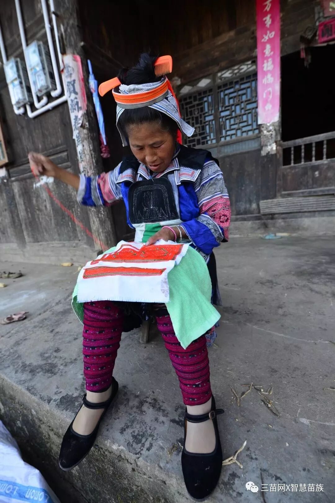 廖启珍是由黄平嫁过来的革家女,现在都有孙子了。我问她,会不会做革家衣?她毫不避讳地说,那有什么?我们革家人不会那还行?说着,翻箱倒栕,排出一大抱衣物出来。她说,这些都是她从小就做的,虽然没有现在年轻人们穿着的那样艳丽,但这是真货。不象她们现在拿毛线做的那种。我不懂欣賞,但我相信这些是一个女孩的手艺成就,是值得骄傲的工艺所在。她说,我的这些衣服在施秉很少穿,因为施秉革家比较少,大多回老家去走客时穿。不过,有一个节日她们也会穿,那就是石厂革家芦笙会。