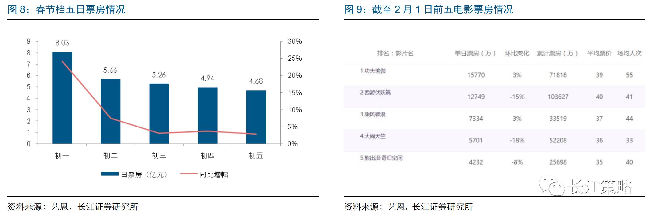 传媒:春节期间票房回暖,三四五线城市贡献主要增长。我们认为大年春节档票房好于预期表现,最主要的原因是票补重启。