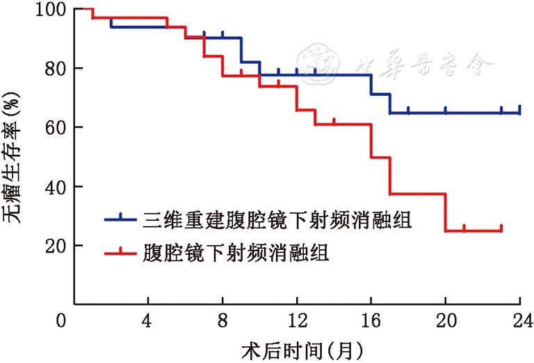 图6术前进行三维重建对肝癌患者腹腔镜下射频消融术后无瘤生存期的影响