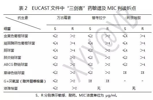 当然无论是CLSI还是EUCAST,对于发现万古霉素耐药的葡萄球菌、或者万古霉素非敏感的链球菌都要求送参考实验室进行验证的要求,这一点是一致的。并且在EUCAST标准中有IE标识(IE indicates that there is insufficient evidence that the organism or group is a good target for therapy with the agent)。