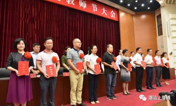 市领导陈良贤、郑剑戈、邱奕辉、吴启煌、徐宗玲、林依民、刘辉,汕头大学党委书记、校长姜虹出席会议,并向荣获“汕头市优秀校长”“优秀教师”“优秀教育工作者”及“汕头市名教师”“名班主任”“名校长”称号的先进个人颁发荣誉证书。
