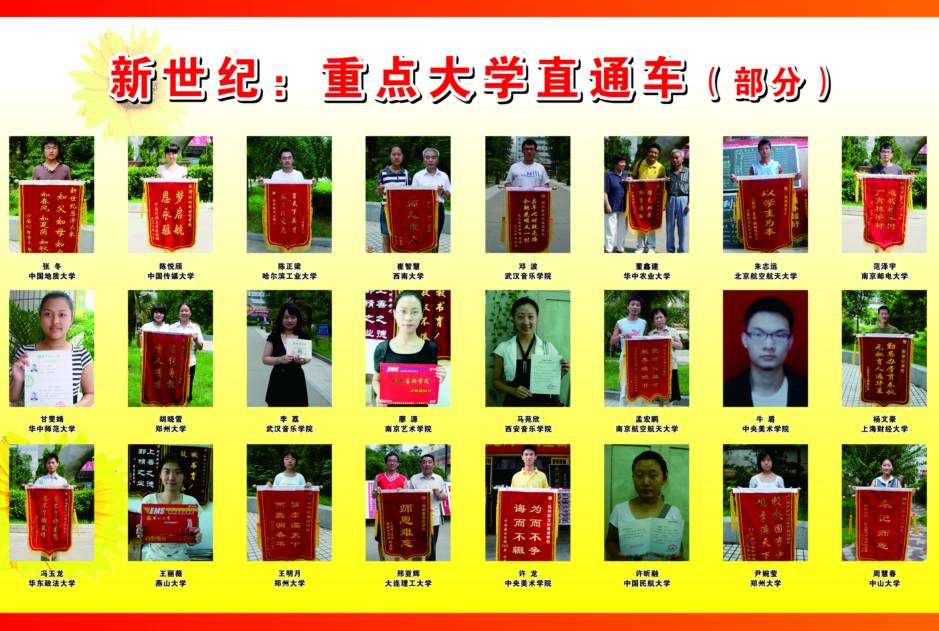 新世纪学校根据艺术生文化课的特点,依托本校雄厚的师资,特开办艺术生文化课100天冲刺班,每年帮助大量艺术生大幅度提高成绩,顺利考入理想的大学,已成为艺术生文化课冲刺第一品牌。