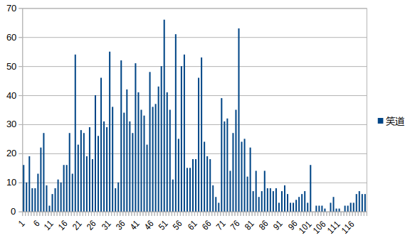 ∆ 图中横坐标是章回编号,纵坐标是“笑道”的词频