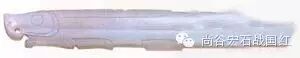 此玉为乳白色通闪石玉,有灰色斑痕。以单线雕出鱼头、鱼睛、鱼腹,嘴上有一小孔,是周朝玉中的极品。