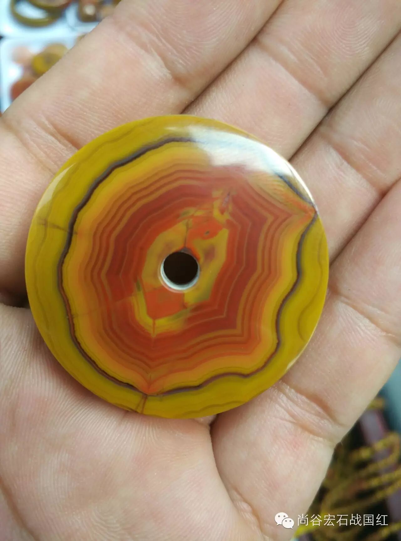 我们现代人秉承了古人的传统!喜爱玉璧,一下是战国红制作的玉璧!红黄相间,符合大众的神美!需要战国红的加微信zghmn6688