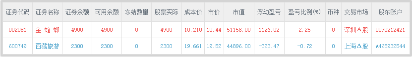 继续持有金螳螂(002061)、西藏旅游(600749)共计五成仓位。