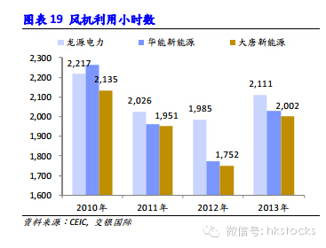 基于2013年年报业绩的测算,龙源、华能和大唐新能源的盈利能力相对于风机利用小时都非常敏感,净利润对风机利用小时数的弹性系数分别达到了5.4、5.9和15.6。