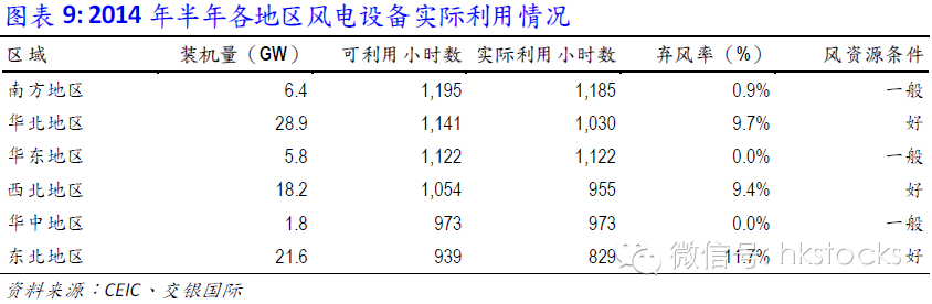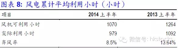 在弃风率好转的前提下,风机利用小时数还出现大幅下滑,这反映出2014年风资源下降程度很大。风资源不足是今年风电运营商盈利不佳的主要影响因素。