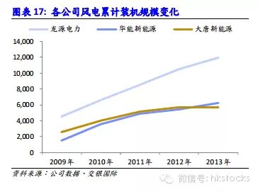 行业趋势大变化可能会出现在2017年前后。届时国家规划的十二条“西电东送”电力输送通道将全部竣工投产,华北和西北地区的富余新能源电力将被输送至中东部地区。而如国电、华能等传统大型风电运营商在三北地区有很多的风电场储备,届时可以加速开发利用,而低风速的中东部的风电发展速度将减慢。而长期来看,大型风电运营商在经营管理方面更具优势,存在规模优势,当行业进入平稳发展阶段后,他们可以通过并购来继续提高市场占有率。
