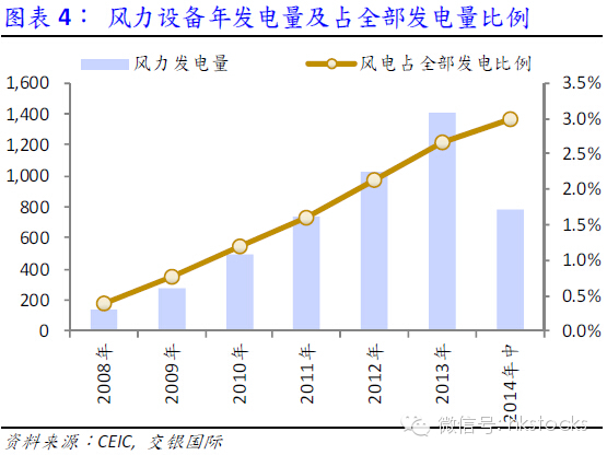2014年风电运营行业主要数据:风机利用小时大幅下降