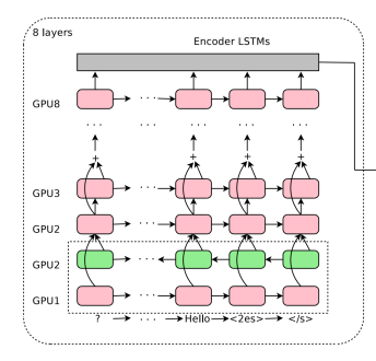 GNMT 的编码器网络本质上是一系列堆叠的 LSTM: