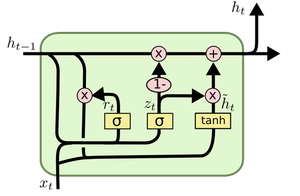 在上图中,x_t是在时间t上的输入,h_t-1 表示在t-1的上下文。如果x_t具有维度d,则维度2d的h_ t-1 是两个向量的串联: