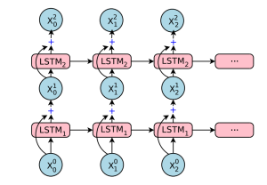在堆叠(stack)LSTM 时,每层都会学习前面一层(下层)馈送到它的时间序列中的模式。随着阶梯越来越高,你会开到越来越多的数据中的抽象模式被馈送到最高层。例如,最低层可能看到一系列的点,并推导出一条线;下一层看到一些线,并推导出一个多边形;接下来的层看到一组多边形,并学习一个物体,等等。当然,堆叠的层数有一个限制,以什么方式堆叠 LSTM 也有限制——并不是层数越多越好,因为最终得到的模型可能太慢而难以训练。