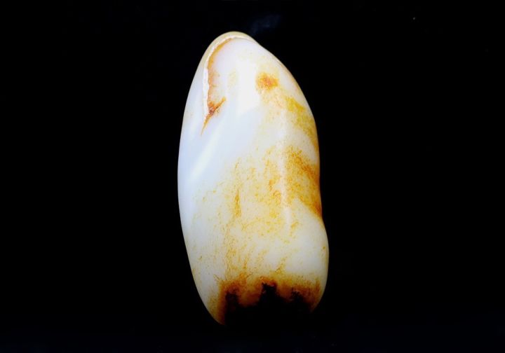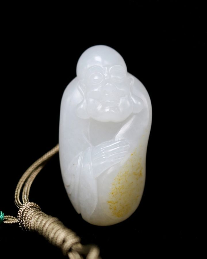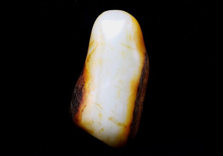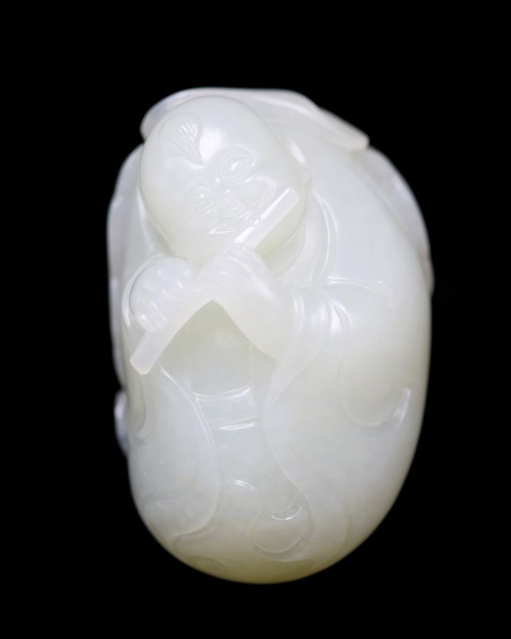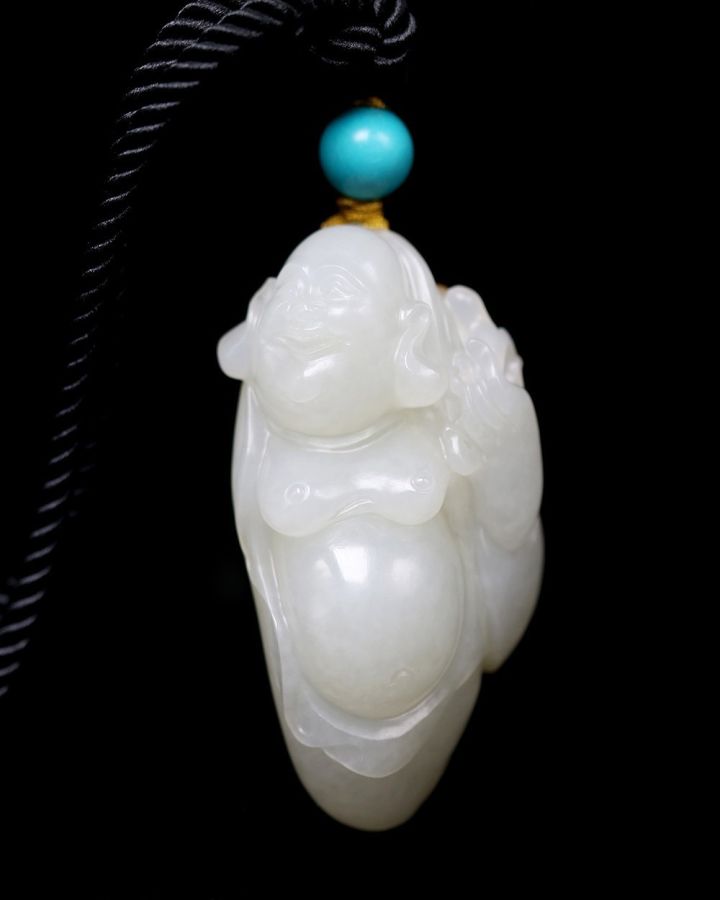 和田籽料,背部有红皮。上品。一般而言,传统玉雕题材作品的创作较难,因为对作品的造型准确性要求很高,对形态的精准把握更是不易。这件作品,作者用“功夫”征服了难度,故有此精品。大肚能容天和地,笑口看破古与今。在童子戏弥勒的欢乐之中,象征着多子多福,幸福美满,寄托了无限美好。