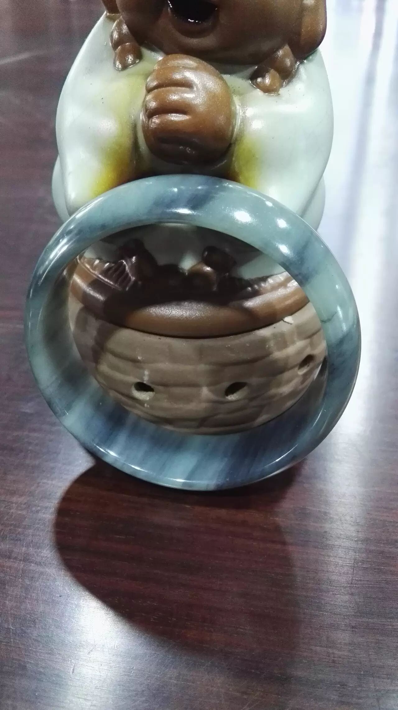 2、细墨青花(亦称淡墨青花、散墨青花)其特点:是石墨沁点很细,有的玉料不注意基本看不出来。多数情况下,这种玉料水头稍高,油性稍差。尤其是白玉部分的白色浓度不高,而常常呈现阴白色。