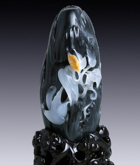 青花玉又称黑白玉(指青花玉中黑白分明、油脂感比较好的),因其色泽反差大,作品视觉效果好且材料亦相当稀缺故有很高的收藏价值。