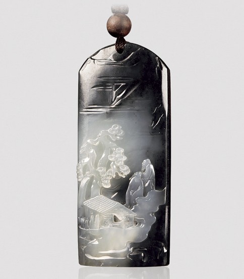 当浓重的墨色在凝静的白玉中吐纳时,伴随着“青花笔锋浓转淡”,另一种清逸悠远的境界怡然而生。青花玉的墨色亦如青花瓷的青色,浓淡相宜最终将世间万物的斑斓色彩概括为由白至黑的不同层次,充分满足了观赏者对色彩的想象与向往。不同的色彩还构成了明暗不同的光元素,一黑一白、一明一暗的色光组合,幻化出无尽的立体时空画卷。
