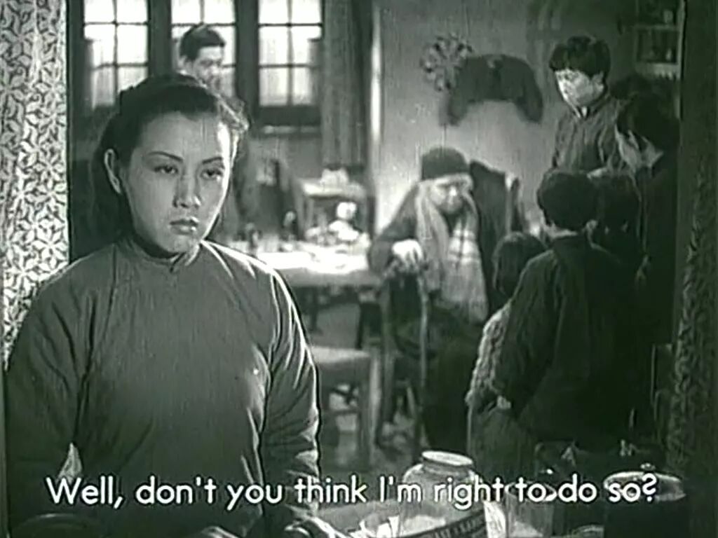 图左:上官云珠饰演的蓝又兰(电影《万家灯火》)