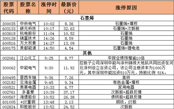 周一两市震荡走高,双双收红,除ST之外涨停33家。部分非新股一字板的涨停股如下: