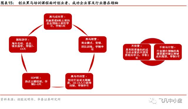 创业黑马课程种类多、导师质量高,保证服务的高覆盖与高品质。创业黑马共设有黑马成长营、黑马连营、黑马导师营、天使营、千里马计划、EDP、国际游学项目等7类课程,7类课程具有不同的定位、周期及规模,多样的定位增加了客户的覆盖面,目前其客户群体不仅有各类创业者,也包括成功企业家及行业潜在领袖。此外,创业黑马具有非常优质的导师资源,包括企业家如刘强东、投资人如徐小平、学者如张维迎等,导师是培训业务的核心资本,高质量的导师保证了高质量的服务,进而扩大公司的影响力。