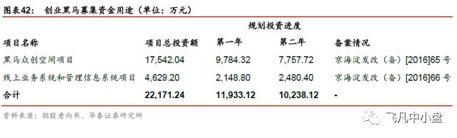 推进二、三线城市业务布局,升级线上服务平台。黑马众创空间项目将在“黑马会”覆盖的12个城市建设众创空间,基本形成以北京总部为运营中心,辐射全国主要城市、覆盖全国主要区域的业务布局。项目建成后,有助于公司实现服务渠道下沉,扩大公司业务覆盖范围,并逐步架构出一个向全国推广服务于创业者成长历程的业务体系,进一步提升公司竞争力,奠定长远的发展基础。线上业务系统和管理信息系统项目旨在提高线上平台的开放性、服务的丰富度、功能的拓展性,进一步凝聚创业社群建立强联系、汇集满足创业者成长核心需求的多维度资源、实现快速预订、在线支付等功能、开发在线学习、完善在线推广。项目落地后,将明显增强公司的市场开发能力,提高信息共享与深入分析效率。