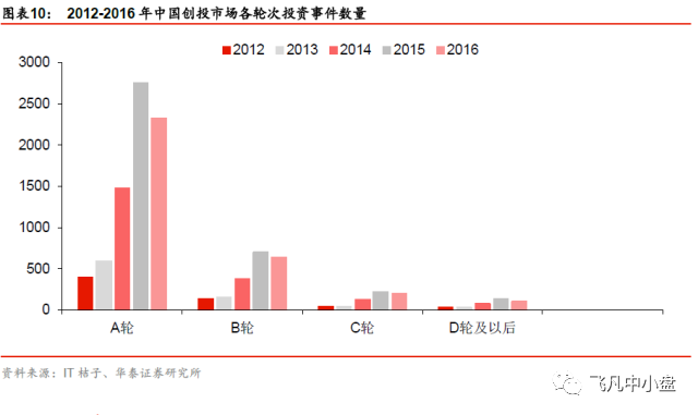 早期创业投资较为活跃,后期创业企业生存难度加大,创业服务需求凸显。移动互联网的迅猛发展降低了创新创业的门槛,激发了中国创业者的创业热情。根据IT桔子统计,2012年到2016年间,种子轮和天使轮的投融资占据了创投市场近50%的份额,说明优质项目数量众多,早期的创业投资非常活跃。尽管创业公司在A轮之前的生存率较高,但在经历初创期后企业将面临更多的困难,生存难度加大。两年通常是创业公司发展的分水岭,能够从成长期顺利过渡到上市或收购的企业仅仅是凤毛麟角。创业服务机构通过提供专业技术、融资渠道、产业资源等各项支持,能够有效提高创业成功率,在初创企业的长期生存中发挥着重要的作用。